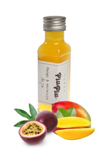 Mango, buď ho milujeme a nebo nenávidíte. Toto asijské ovoce je bohaté na vitamíny A, C, draslík a vlákninu. My k němu přidáváme ještě maracuju, ta dodá sirupu další dávku vitamínů a navíc ho skvěle ovoní.